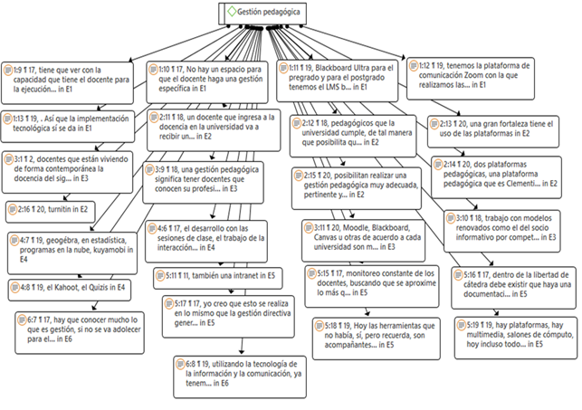 En la universidad privada estudiada, la administración pedagógica cobra especial relevancia debido a la formación continua que reciben los docentes. Oré-Rojas & Hoces (2022) enfatizan que esta gestión se fundamenta en la misión institucional y su compromiso con la sociedad, poniendo énfasis en el uso de plataformas y recursos digitales para favorecer el aprendizaje.