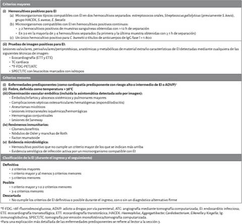 Tabla 2: Definición de los criterios diagnósticos de endocarditis infecciosa modificados por la Sociedad Europea de Cardiología (2023).