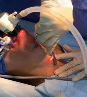 Los tres pacientes manifestaron su entera satisfacción con el procedimiento y resultados. Concluyeron que la cirugía endoscópica tiroidea es un procedimiento seguro para pacientes con lesiones en la glándula tiroides, que tengan indicación quirúrgica, proporcionando excelente resultados cosméticos 4. A pesar de la mejora cosmética local, estas técnicas pueden ser desafiantes debido a planos de disección desconocidos, rutas más largas hacia la región anterior del cuello y nuevas eventualidades. Además, de una curva de aprendizaje larga 5. El abordaje vestibular de la tiroidectomía endoscópica transoral (TOETVA) y paratiroidectomía endoscópica transoral (TOEPVA), es un enfoque novedoso para cirugía de la línea media del cuello. El primer procedimiento TOETVA se informó en 2016 6. En esta fecha, Anuwong publicó la primera serie de casos, de 60 pacientes, que se sometieron a tiroidectomía sin cicatriz a través del vestíbulo inferior de la boca, con excelentes resultados. Esto maximizo los esfuerzos mundiales para explorar un enfoque alternativo de la tiroidectomía. Actualmente, TOETVA y TOEPVA, con casi 1.000 casos en la literatura reportados, quizás más que otras técnicas de acceso remoto, está atrayendo pacientes interesados en evitar una cicatriz en el cuello, y es una técnica que ha ganado aceptación como una alternativa a seguir, a los abordajes cervicales abiertos tradicionales, para evitar una incisiones en el cuello4-6.