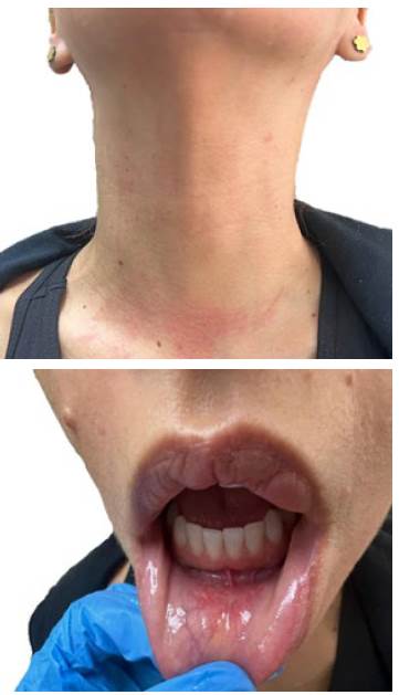 Paciente femenina de 42 años de edad, evaluada por hallazgo incidental ecográfico en lóbulo tiroideo derecho. La lesión se ubicaba entre tercio medio y polo inferior del lóbulo tiroideo derecho, con medidas de 1,5 x 1,1 x 0,5 cm, con microcalcificaciones y vascularización central y periférica, cuya punción reportó carcinoma papilar tiroideo. Se planteó realizar tiroidectomía transoral por abordaje vestibular más corte congelado. Se evaluó la cavidad oral de la paciente verificando que no presentaba enfermedad periodontal concomitante, considerándose así, una cirugía limpia contaminada, ya que se irrumpe la mucosa oral. Se le sugirió lavados bucales preoperatorios con Peridont® y se obtuvo el consentimiento informado de la paciente.