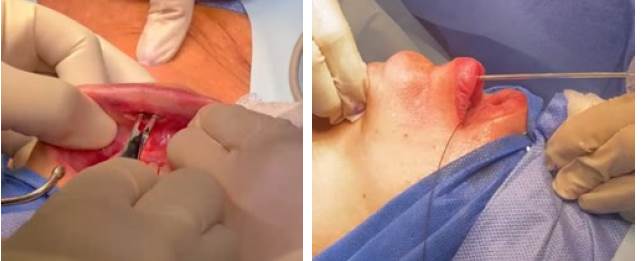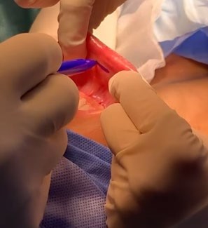 Figura 7 y 8: Incisiones laterales de 5 mm de longitud, laterales a los dientes caninos y más cerca del labio inferior.