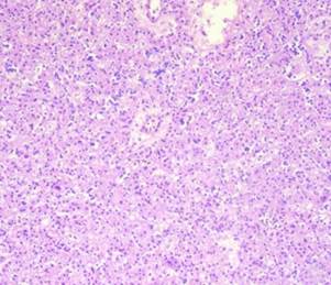Figura 23: Corte histológico de la pieza anatómica, donde se observan características de adenoma paratiroideo: células principales de núcleo redondo y citoplasma granular pequeño.